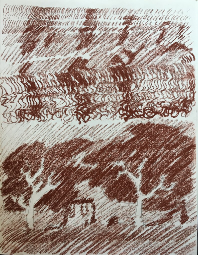 So next I did some experiments with dry media: graphite, conte, sanguine, and charcoal.