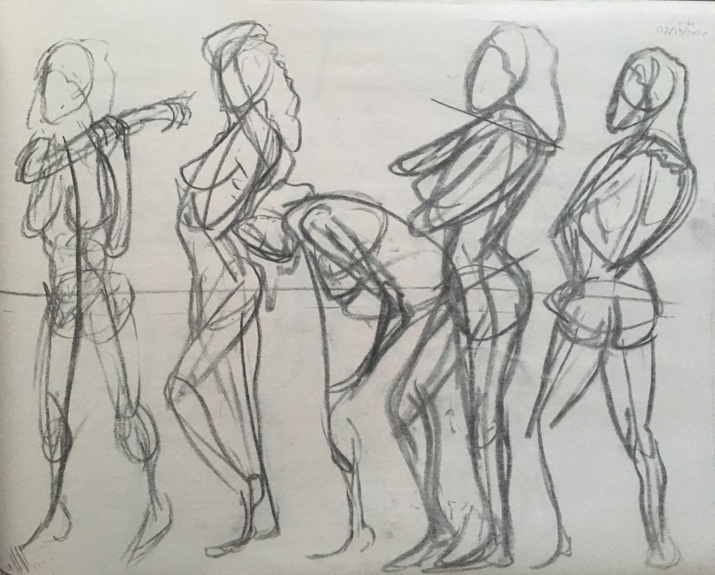 Some stuff from earlier in the year. These exercises were focused on live figure drawing and gesture and were created very quickly. Usually we were only given 15-30 seconds to draw an entire figure. A few of these are as long as 1 minute, but few are beyond that.